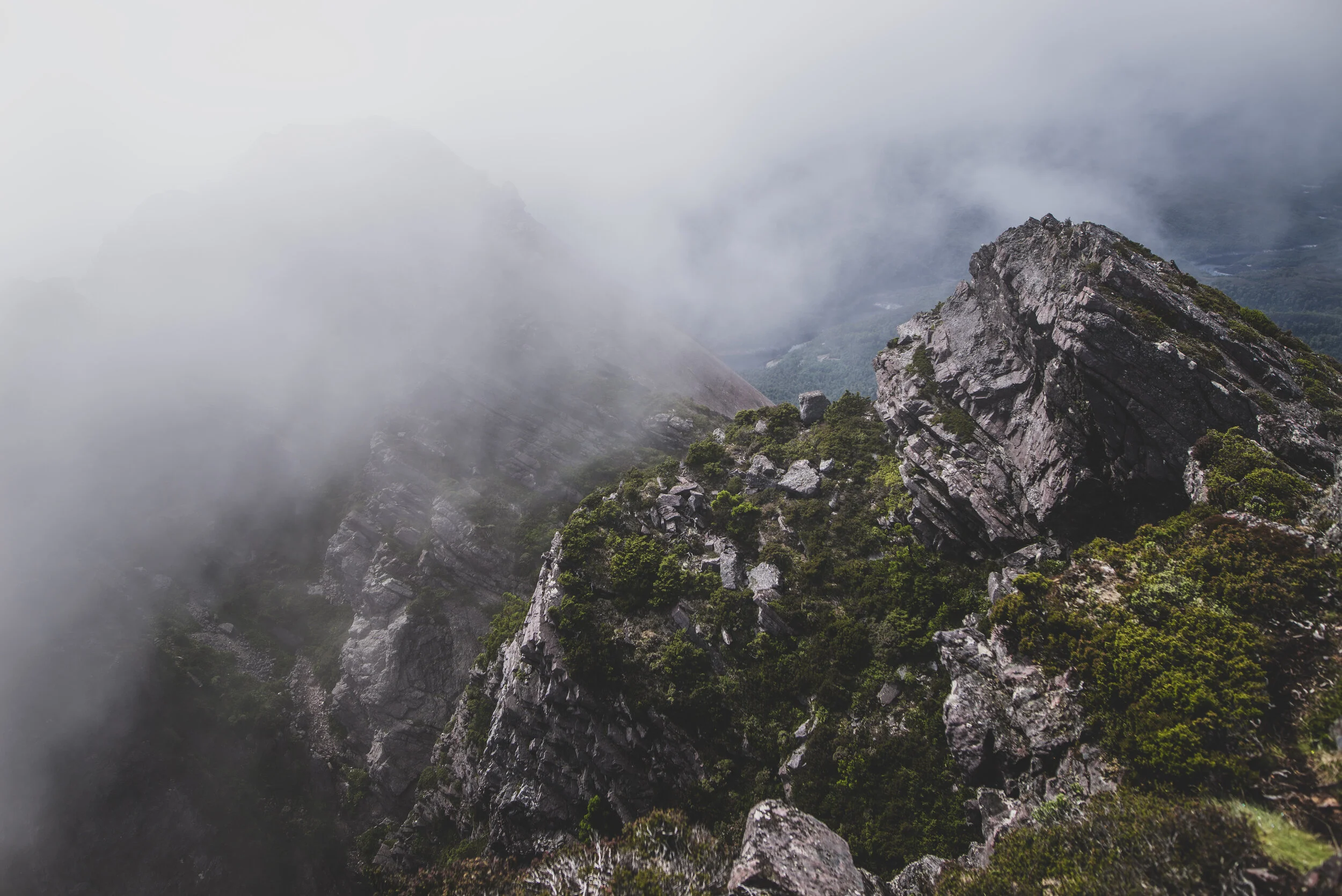 Mount Murchison’s snow covered peak (1275m) on the left with the trig station barely visible through the glare